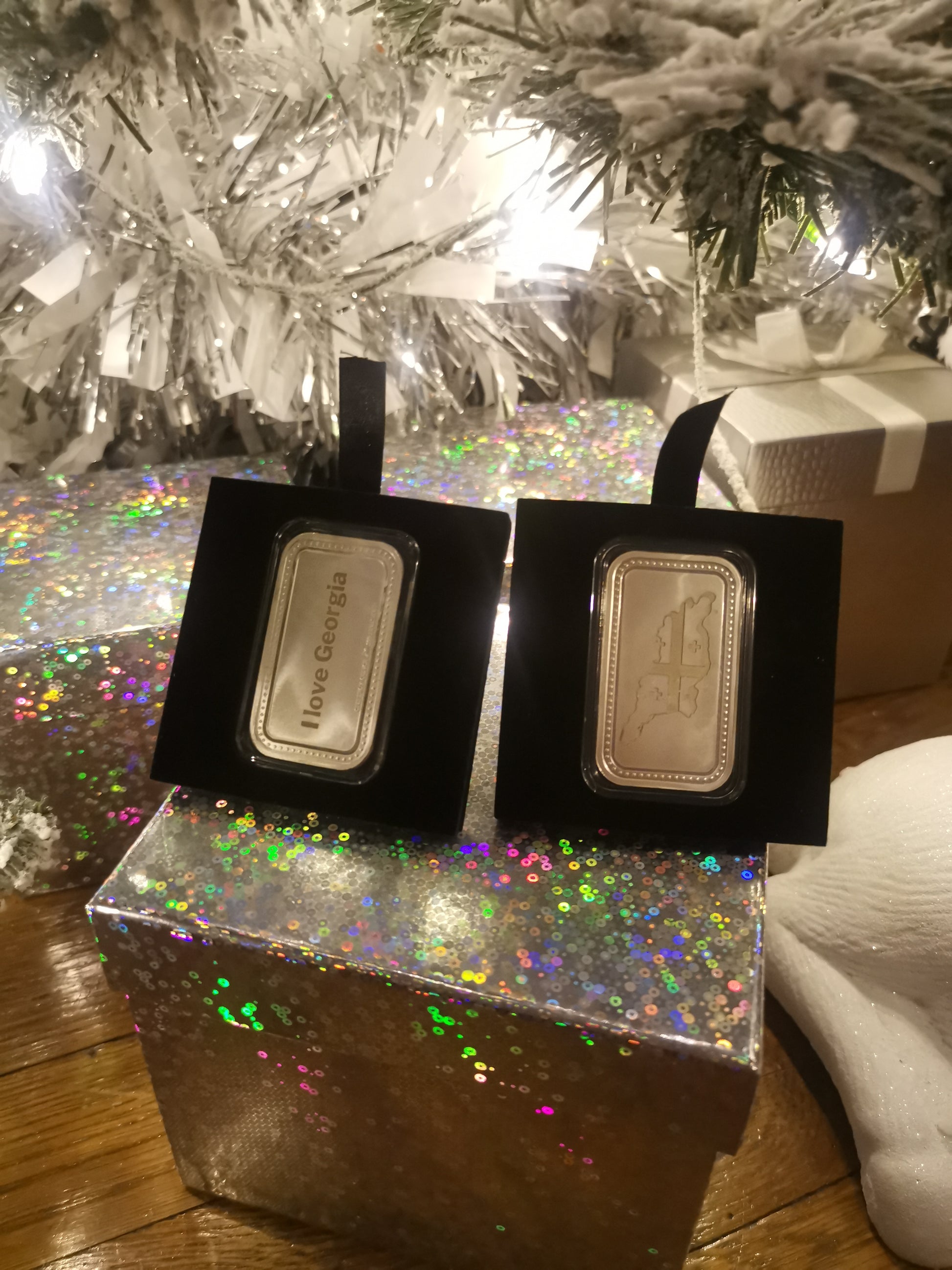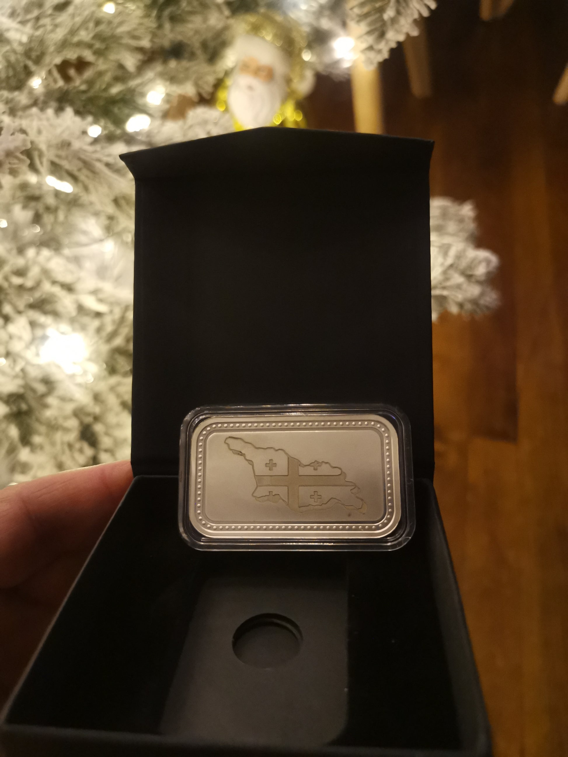 31.15 გრამიამი 999.9 სინჯის ვერცხლის ქარხნისიერ დაბეჭდილი ზოდი, გრავირებით